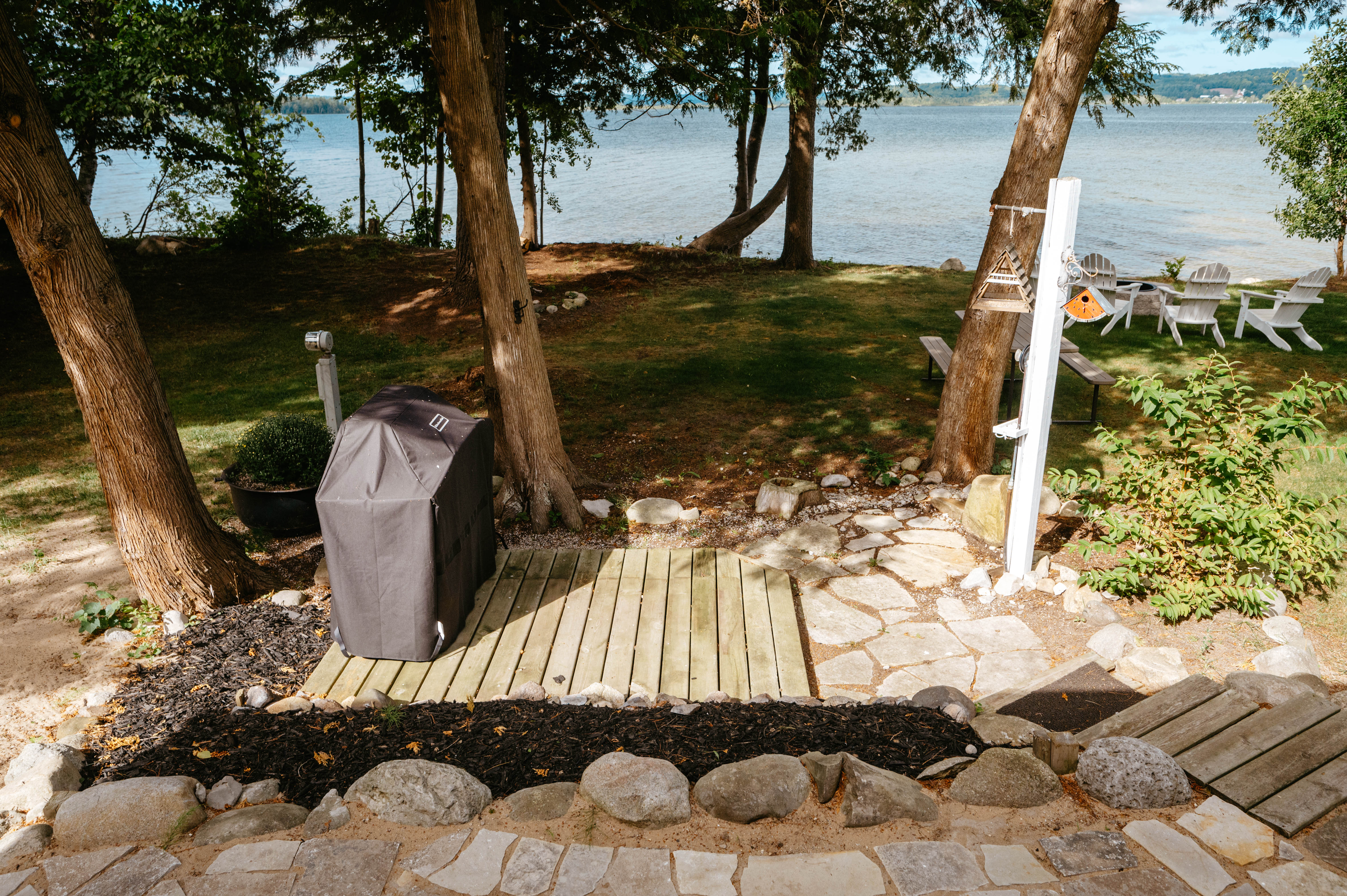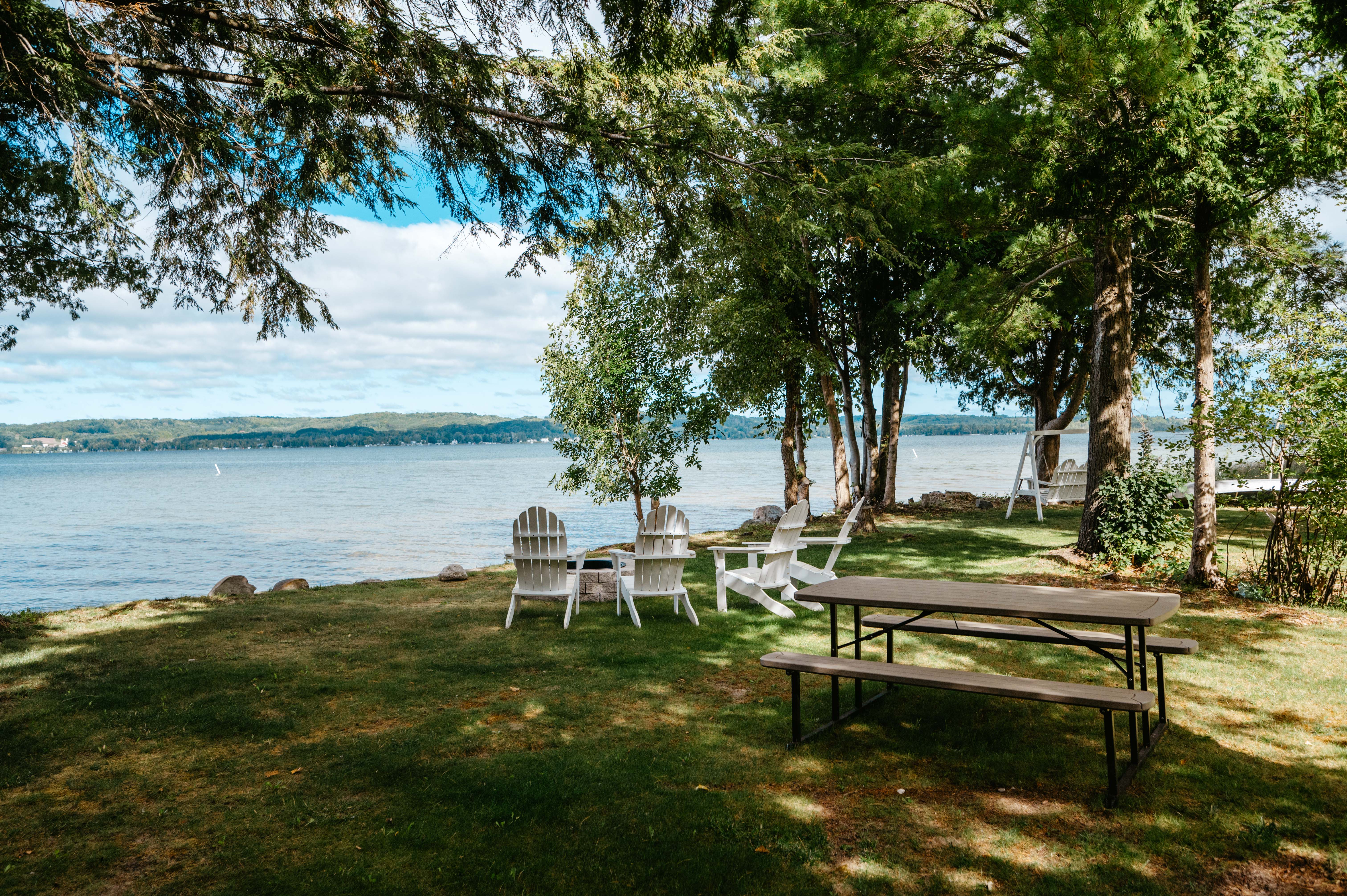 - Step outside to enjoy views of the lake, complete with a fire pit (we supply the firewood!)