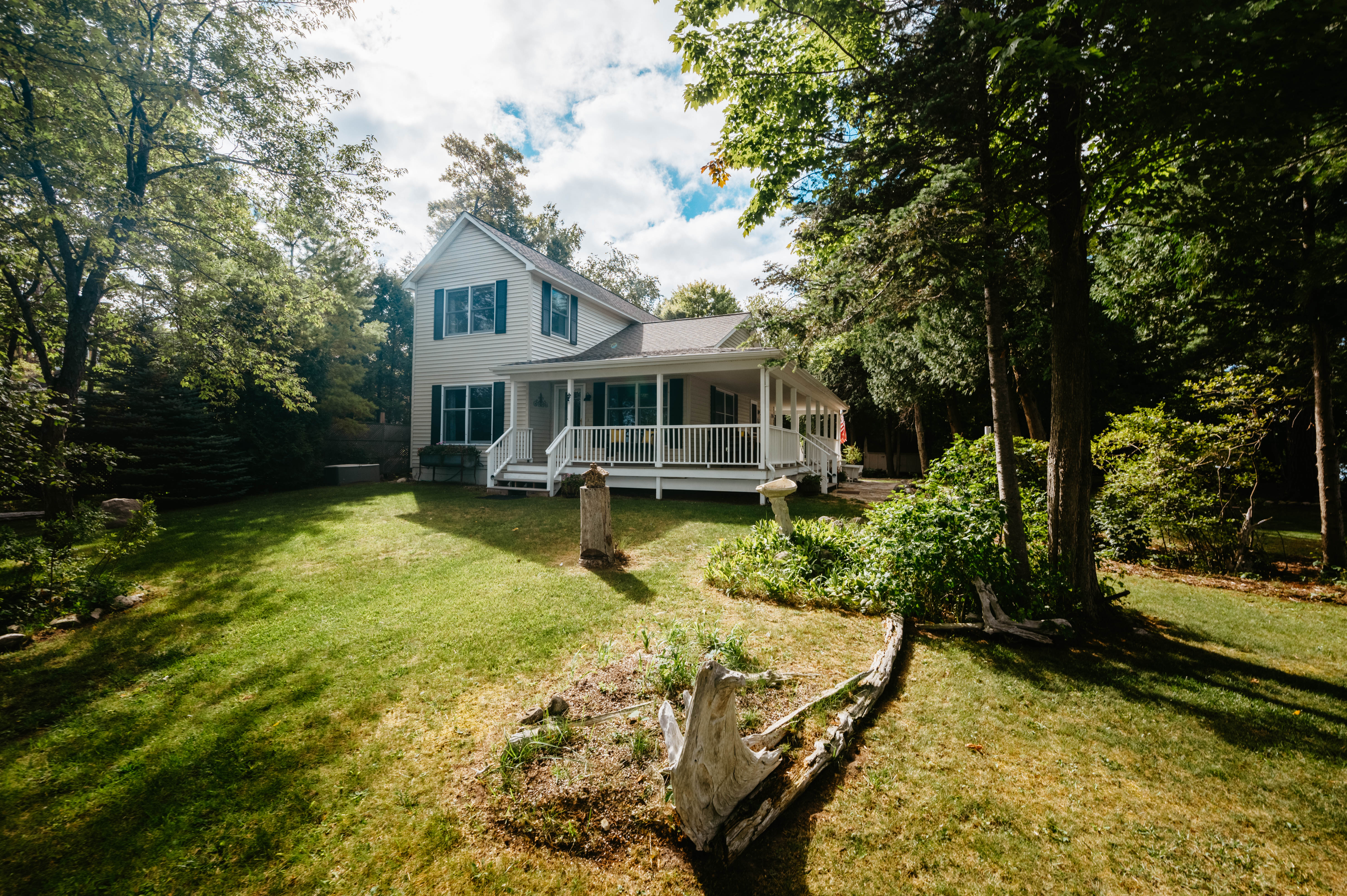 The property is nestled among the trees of Lake Leelanau and home to a family of Bald Eagles.